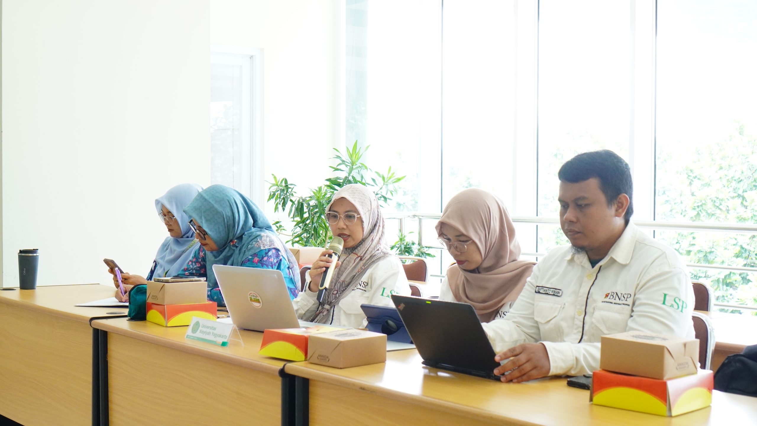 Pada kesempatan ini, tim LSP P1 UNISA dihadiri oleh full team yakni Ketua LSP, Endang Koni Suryaningsih, S.ST., MSc.N-M., Ph.D., Fildzah Malahati, S.Psi., M.Psi., Psikolog sebagai koordinator Adminstrasi dan Keuangan, Septianto Wikan N S.Pt., M.Biotech. Ph.D. sebagai koordinator Sertifikasi dan Standarisasi, dan Erni Saharuddin, S.Sos., MPA. sebagai Koordinator Manejemen Mutu.